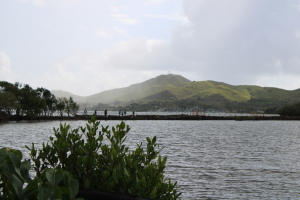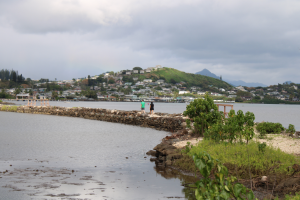 Standing at the shoreline, visitors see the kuapā and Mōkapu. Photo credit: Grace Cajski