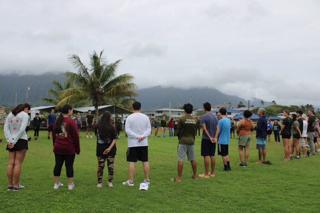 Everyone introduced themselves by their name and their group or who they are with today, as well as what they hoped to receive from this gathering. We heard: new people, learning, laulima, community, connection, free lunch, being outside, work, service, relationships, strength, restoration, malama, to be present, and more.